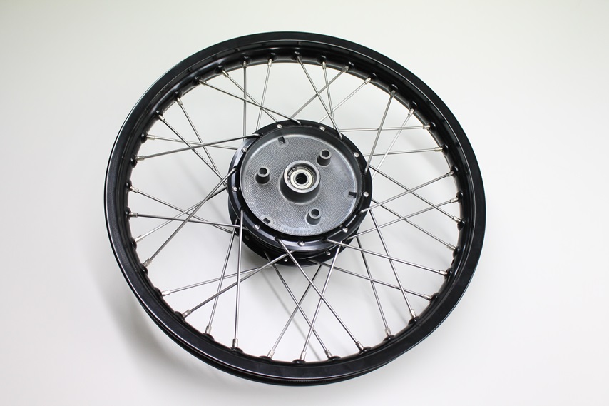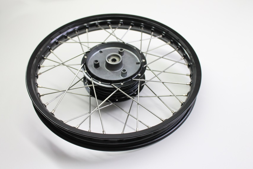 Speichenrad in 1,5×16 mit schwarzer Alufelge